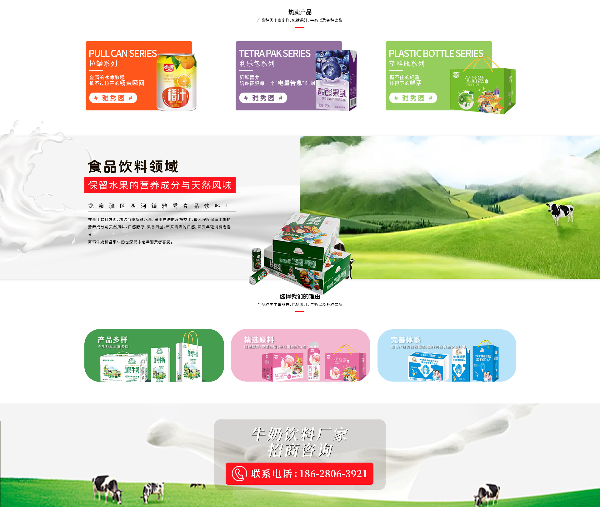 雅秀食品饮料厂的产品种类丰富多样,包括果汁、牛奶以及各种饮品。在果汁饮料方面,精 选当季新鲜水果,采用先 进的冷榨技术,最大程度保留水果的营养成分与天 然风味,口感醇厚、果香四溢,带来清爽的口感,深受年轻消费者喜爱高钙牛奶和坚果牛奶也深受中老年消费者喜爱。